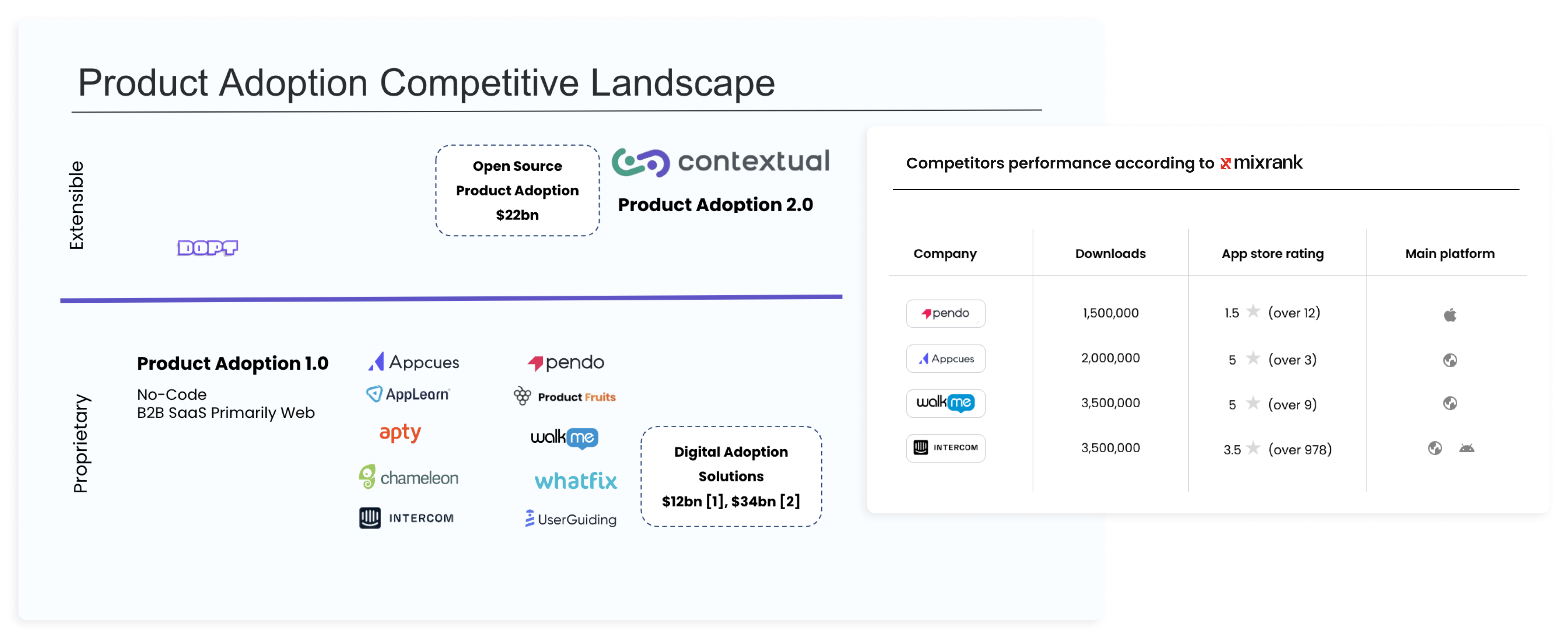 Based on data from Mixrank, we identified the common theme between the competitors as well as what extra we have to offer at Contextual. This helped in identifying the main aspects to focus on in this period and what customers needs are.