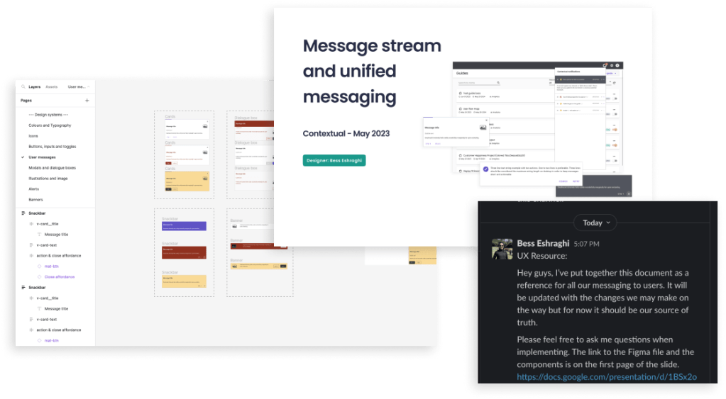 Our goal is to help the team understand the use of each messaging type. We also aim to give users the right information at the right place and time.