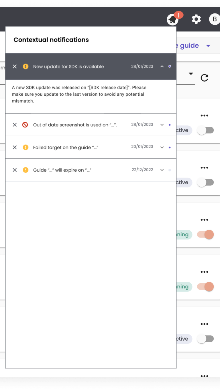 Guides might expire and the users won’t be notified to reactivate them or reassign them to the right users.